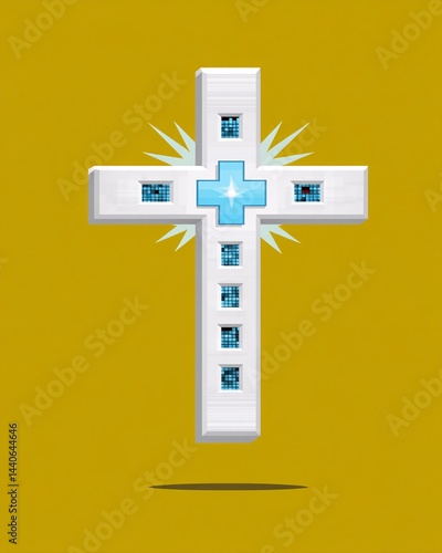 Obraz premium Decorative Religious Cross with Light Effect on a Bright Yellow Background