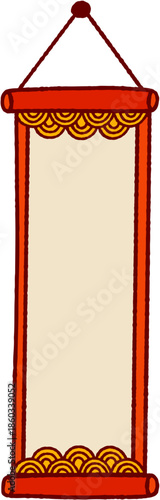 © draftsndoodles, Obraz premium Decorative Scroll with Oriental Waves Vector Illustration