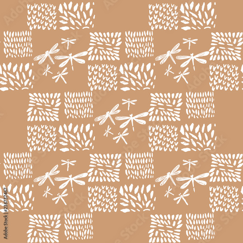 Fototapeta premium Decorative seamless pattern with dragonfly and abstract details. Vector...