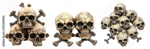 © Jieee Mooo, Naklejka premium Decorative Skull Arrangements with Crossbones for Halloween or Gothic Decor, PNG bundle collection, Isolated on Transparent Background