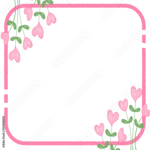 Naklejka premium Decorative Square Frame with Pink Heart Flowers on Right