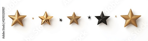 © อาริษา วันดี, Obraz premium Decorative Star Arrangement in Gold and Black on White Background