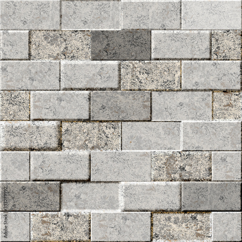 © Denis, Naklejka premium Decorative stone brick wall. Tiles for interior design. Background texture