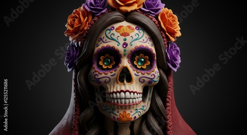 Naklejka premium Decorative sugar skull with flower crown for day of dead