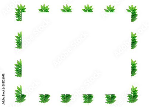 © Mari, Fototapeta premium decorative summer frames, collage of natural green leaves on a white background