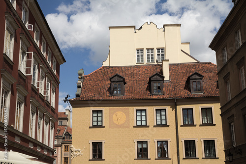 Fototapeta premium Decorative sundial on a building wall in Warsaw, blending history with...