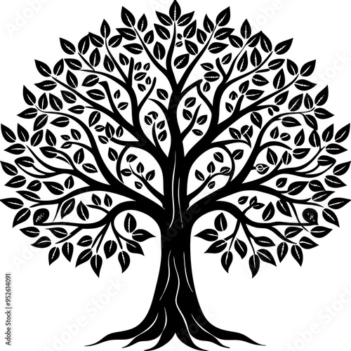© MDMAHBUBUR, Obraz premium Decorative Tree silhouette on white background