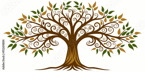 © MDMAHBUBUR, Obraz premium Decorative Tree silhouette on white background