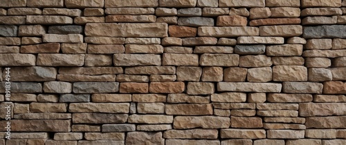 © Den Boro Day, Fototapeta premium Decorative, uneven stone cladding made of natural materials is being presented in a sample palette for building facade decoration.