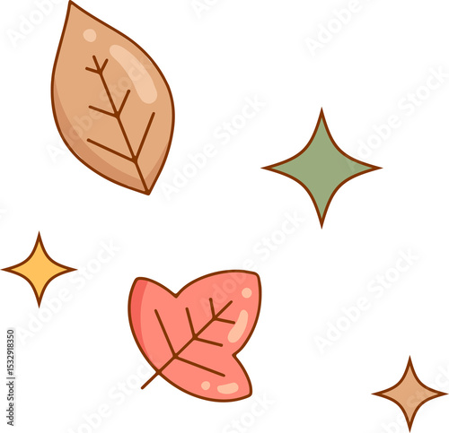 Obraz premium Decorative vector art is showing stylized autumn leaves and diamond stars on transparent canvas