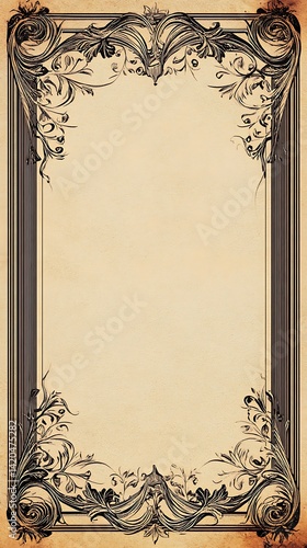 Obraz premium Decorative vintage frame with elegant swirls and flowers on parchment