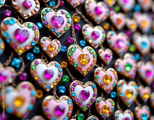 © CRISPIFLY, Obraz premium Decorative Wall Hanging with Heart Shapes and Gem Embellishments