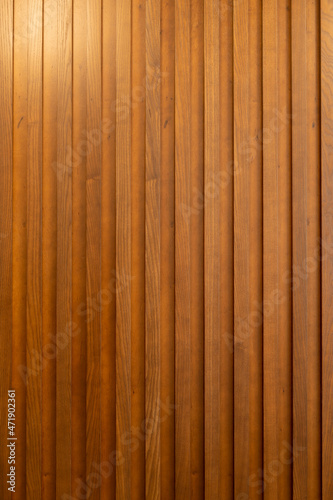 © Виктор Кеталь, Naklejka premium Decorative wall made of wood with wooden slats. Creative vintage background.