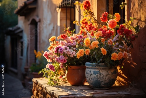 Fototapeta premium Decorative window surrounded by vibrant flowers., generative IA