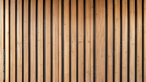 Naklejka premium Decorative wooden wall with vertical timber slats showcasing a minimalist...