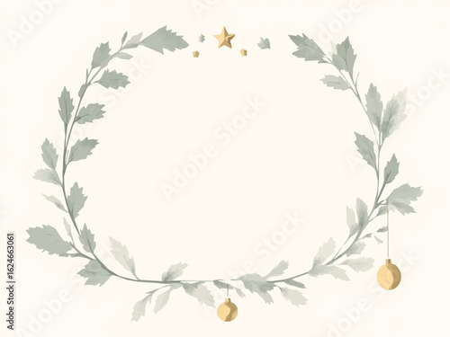 Fototapeta premium Decorative wreath frame with lush foliage and festive ornaments for holiday cheer.