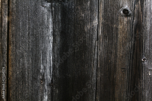 © North10, Obraz premium Decrepit medieval beaten backdrop. Coating of coarse split spotted battered background. Old rotten destroyed texture bar. Chipped flaked surface plank, dirty decking material.