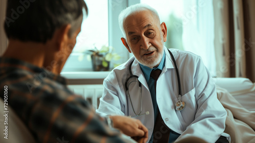 Fototapeta premium Dedicated doctor examining an elderly patient in a nursing home