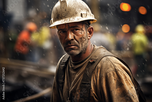 Fototapeta premium dedication and hard work of a "construction worker" amidst the hustle and...