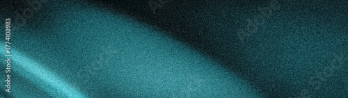 Obraz premium Deep abstract teal and cyan grainy wide background with a flowing light arc...