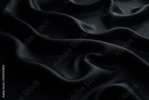 © Pradubpun, Obraz premium Deep black silk, flowing waves, luxurious texture, sheen, liquid