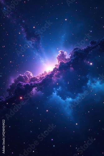 Obraz premium Deep blue and purple nebula glowing softly in the dark cosmos, galaxies,...