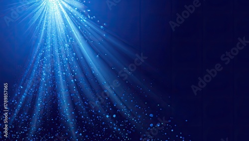 © Ryu studio, Fototapeta premium Deep blue background, radiating light beams