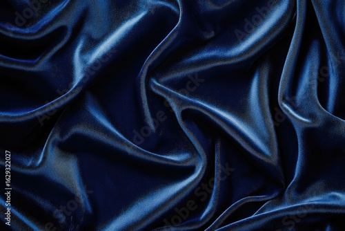 © Indira, Obraz premium Deep blue fabric with rich, flowing folds and subtle sheen, exhibiting luxurious texture and dramatic drapery