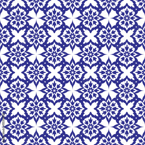 Fototapeta premium Deep blue floral ethnic arabic motif seamless pattern for wallpaper, tile and...