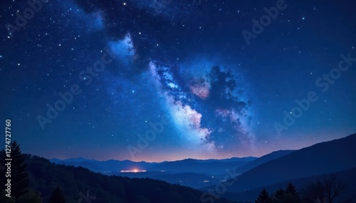 © dadtophoto, Fototapeta premium Deep blue night sky with bright stars and planets, milky way, universe