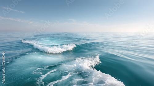 © andiend, Fototapeta premium Deep Blue Ocean Seascape with Gentle Ripples Under a Clear Sky with Sunlight Sparkles on the Water Surface