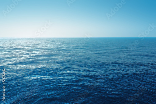 © EdvvinStudios, Fototapeta premium Deep blue ocean water surface meeting clear sky horizon