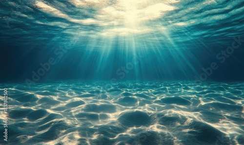 Fototapeta premium Deep blue ocean with sunlight shining downwards