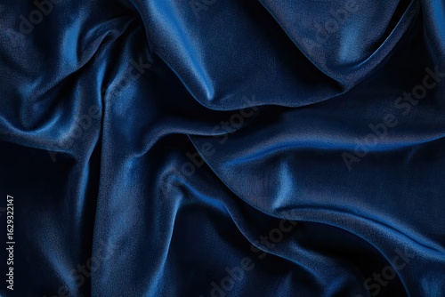 Fototapeta premium Deep blue satin fabric with luxurious folds and soft, shimmering texture,...