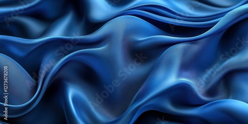 Fototapeta premium Deep blue silk fabric draped elegantly creating soft waves and textures under gentle lighting