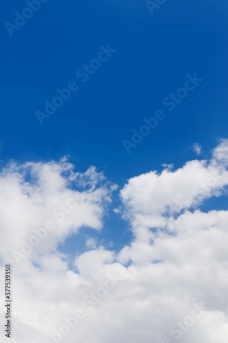 © kvitkanastroyu, Naklejka premium Deep blue sky with white clouds, copy space