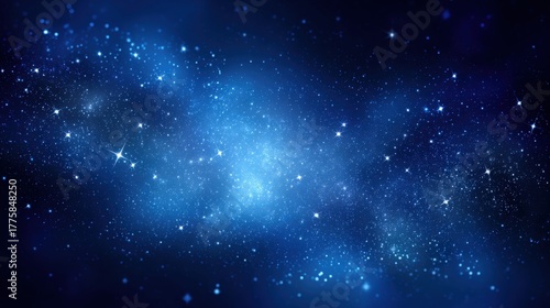 Fototapeta premium Deep Blue Starry Sky Galaxy with Nebula Clouds and Twinkling Stars, Cosmic Space