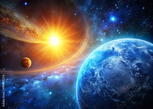 Obraz premium Deep Blue Sun in Outer Space with Celestial Elements and Cosmic Background...