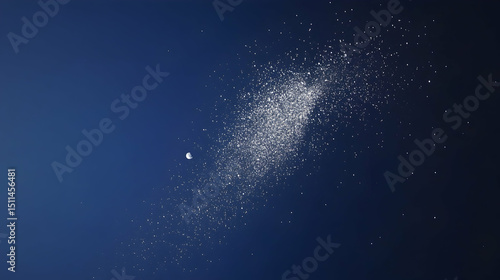 Fototapeta premium Deep blue twilight sky with a silver moon and scattered diamond dust stars