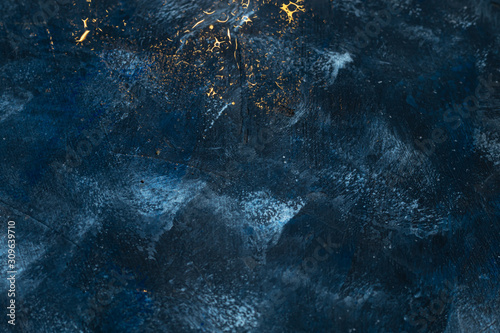 Obraz premium Deep blue with gold splashes over concrete.
