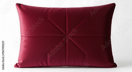 © fatema202, Naklejka premium Deep burgundy velvet throw pillow with geometric quilted diamond pattern for modern home decor