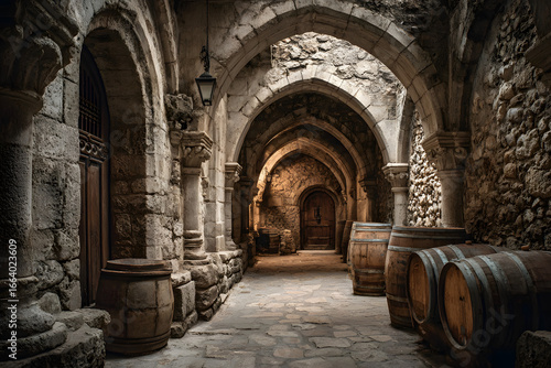 © john, Fototapeta premium deep cellar, wine, wine barrels, France, cellar, grapes, wine barrel, red wine, aesthetics, vineyards, architecture, arch, corridor, interior, arches, church, column, tunnel, building, stone, old, arc