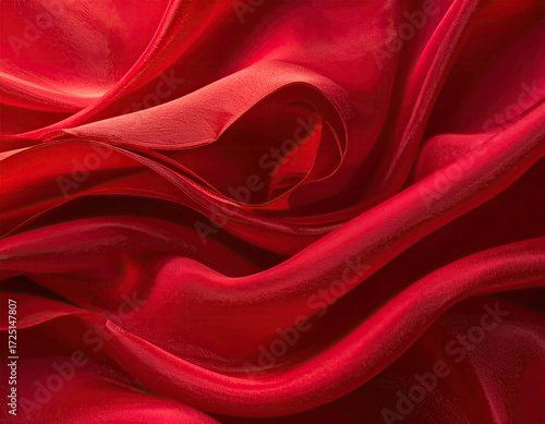 © yaya, Obraz premium Deep crimson silk folds in elegant waves