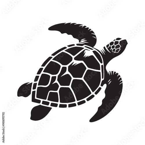 © Vectorhub, Fototapeta premium Deep-diving Loggerhead Sea Turtle silhouette, ruler of marine depths – Loggerhead Sea Turtle illustration – Minimalist Loggerhead Sea Turtle vector – Reptile silhouette