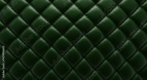 Fototapeta premium Deep Emerald Green Diamond-Stitched Leather Texture