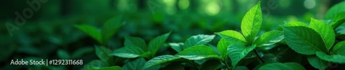 © Thitipa, Fototapeta premium Deep emerald leaves, dense, shadowed undergrowth, wallpaper, texture