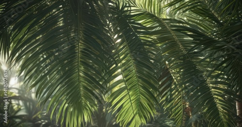 Fototapeta premium Deep emerald palm leaves, sunlight filtering through, rich detail ,...