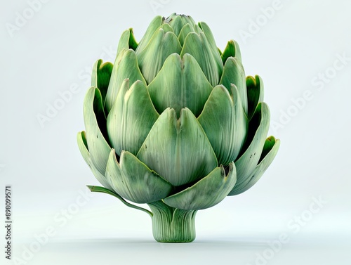 © huiying, Fototapeta premium Deep Green Artichoke at Golden Mean, Rendered with Crisp Clarity, Contrasts Beautifully with White Background, Compelling Composition Emphasizes Freshness and Quality, Ideal for Food Photography