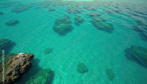 Fototapeta premium Deep green, crystal clear Bahamian water, sunlit surface , bahamas,...