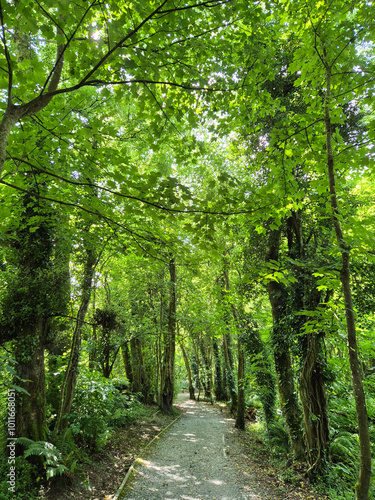 © Studio-M, Obraz premium Deep in the forest, trees, branches and leaves natural background, in the woods